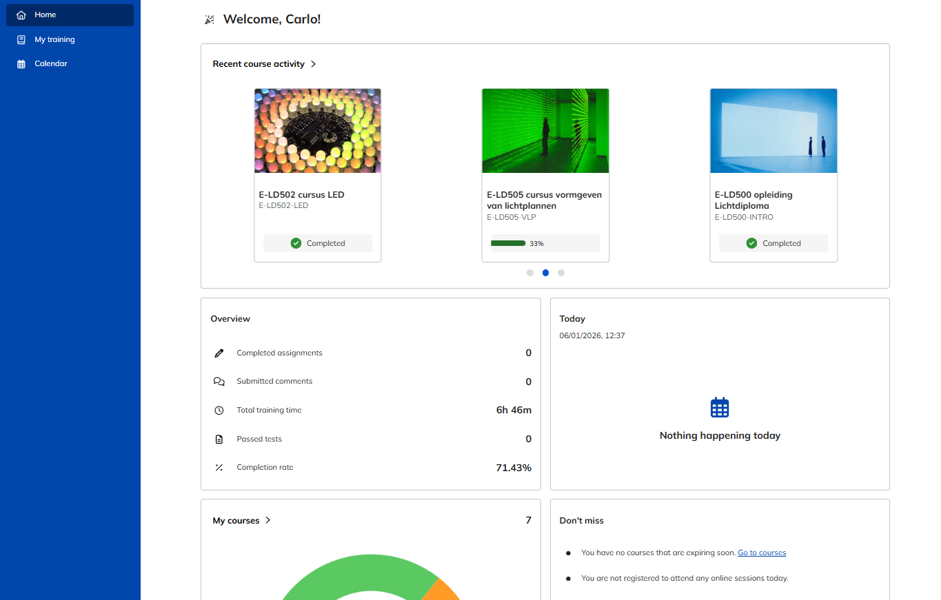 De leeromgeving is via PC of laptop via iedere moderne browser te bereiken.